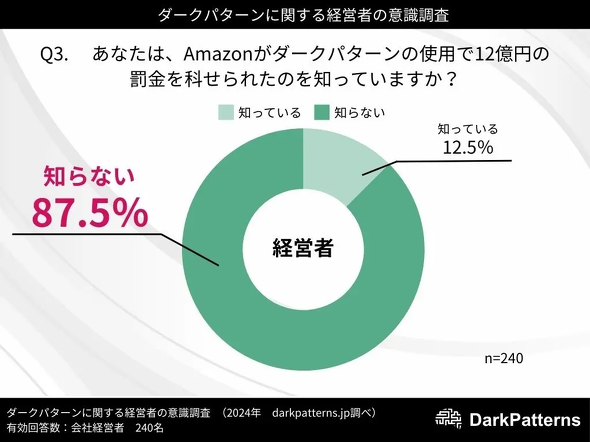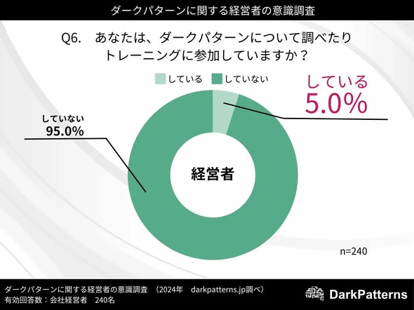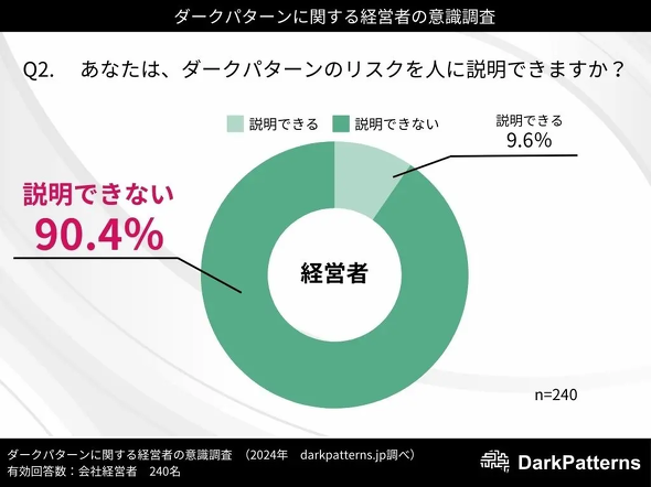 調査によると、約86.3%の経営者がダークパターンを「知らない」と回答。90.4%がそのリスクを「説明できない」と答えた。