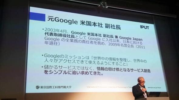 イベントではグーグル関係者による講演やIPUTで学ぶ学生たちの実験などさまざまな成果を発表した。基調講演を務めたのはIPUTの村上憲郎学長だ。同氏はグーグル米国本社副社長兼グーグル日本法人の社長などを長年務めたほか、AIについての見識が深い。村上学長に、IPUTでのAI時代の人材育成術や、グーグルの発展の歴史について話を聞いた。