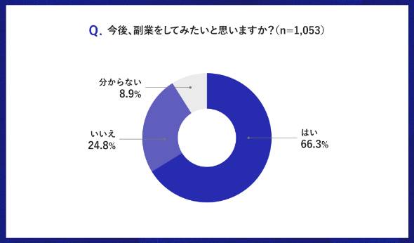 今後の副業意向については、「副業を実施したい」と回答した人が66.3%、「副業を実施したくない」と回答した人が24.8%となった。
