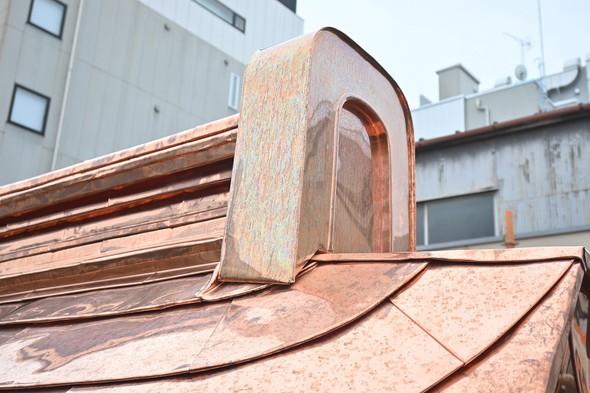 13棟、2138平方メートルに及ぶ工事は、交代勤務をしながら24時間体制で行われた。緑青色に染まっていた屋根は新品の銅板瓦に代わった。この瓦も時間がたつにつれ酸化し、緑青の被膜に覆われていく。日に照らされて輝く姿を見ることができるのは今だけだ。
