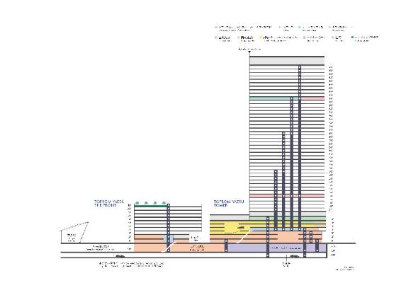 TOFROM YAESU THE FRONTは、地上10階・地下2階で事務所、店舗、診療所などが入り、2026年7月に竣工予定となっている。TOFROM YAESU TOWERは、2026年2月竣工予定だ。地上51階・地下4階で事務所、医療施設、劇場・カンファレンス、バスターミナル、店舗、住宅などが整備される。