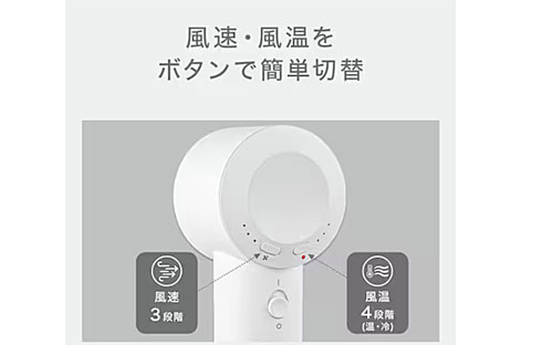 加えて、髪と頭皮をケアするモードを搭載。温風と冷風を数秒おきに自動で切り替えることで、髪ダメージを軽減し、髪のつやが向上する「温冷循環モード」や、50度以下の温風で髪を乾かし、髪と頭皮のダメージを抑える「ソフトケアモード」を搭載した。