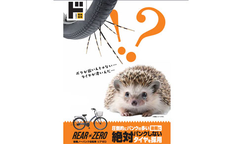 そこでリアゼロでは、パンクリスクの大きい後輪はノーパンクタイヤ、前輪はノーマルのワイドタイヤを採用。ノーパンクタイヤはチューブレスでパンクせず、耐久性も高く、乗り心地もノーマルタイヤと大差ないタイヤで、「高単価なノーパンクタイヤを後輪のみにしたことで、一般的な両輪ノーパンクタイヤ自転車の相場より約3割の価格カットを実現した」(ドン・キホーテ)という。