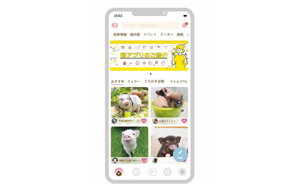 購入者のアフターサポートとして、SaLaDa社は飼育・健康管理アプリ「mipig owners」を提供している。マイクロブタを購入すると、このサービスには2年間の加入が必須で、費用は月8800円。ブタの体重と体型に応じたフードを発送するほか、アプリを通じて飼育状況を把握できるようにしている。