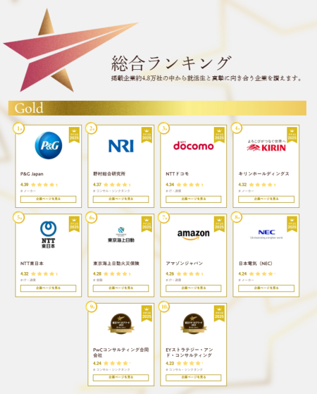 これらの活動が就活生にも認められている。就活サイトを運営する、ワンキャリアが実施した「就活クチコミアワード2025」では総合ランキングで5位を獲得した。
