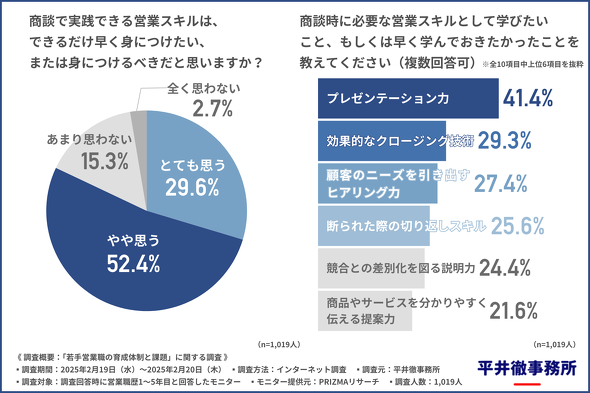 調査は、営業職歴1〜5年目と回答したモニターを対象にインターネットで実施した。有効回答数は1019人、期間は2月19〜20日。