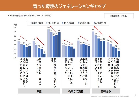 こうした背景には、世代間の育った環境の違いも関係しているという。20代は「保護的な環境で育った」「弱音を吐けば誰かが助けてくれた」と答える割合が高く、「すぐネットで調べていた」「自分で考える経験が少なかった」という回答も多い。このような環境で育った世代は「拒否・失敗回避思考」が強まる傾向がある。