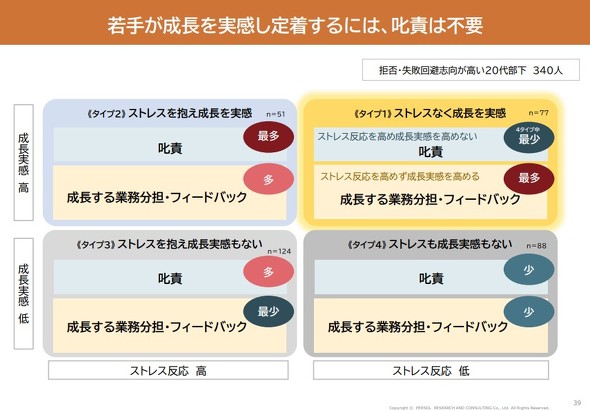 何より成長研究によれば、感情的に怒ることは成長促進に効果的でなく、長期的にはモチベーション低下を招くという結果に。むしろ適切な業務分担やフィードバックの方が重要で、そのような環境下では若手もストレスなく成長を実感できるという。結論、叱責は不要であり、もしも、こうした考え方や対応があるようならアップデートしたほうがいいだろう。