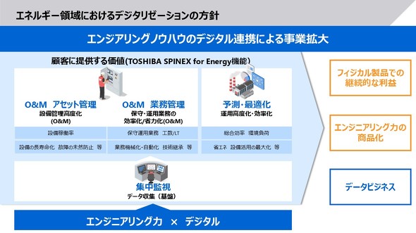 東芝エネルギーシステムズが2019年から提供している「TOSHIBA SPINEX(スパインエックス) for Energy」。エネルギー関連の課題を、顧客との共創によって解決するデジタルサービスで、東芝が100年以上にわたり蓄積してきたエネルギーインフラの知見と、DXを融合させたものだ。