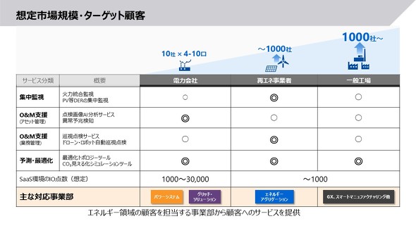 顧客のターゲットは、数こそ限られるものの一件ごとの規模が大きい電力会社、増加している再生可能エネルギー事業者や自家発電設備を持つ工場などがある。それぞれの状況に合わせて、メンテナンスなど独自性のあるサービスを提供していくという。