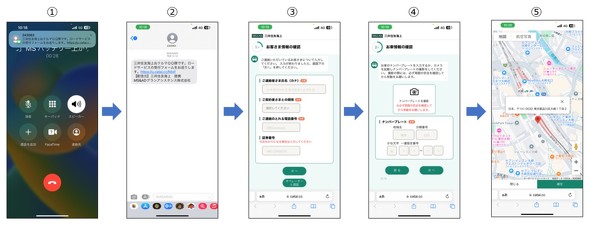位置情報を簡単かつ確実に取得するためには、スマホのGPS情報を使います。また、GPSの精度ではどちら側に止まっているかまでは分かりませんが、カメラ機能で周囲の写真も一緒に送ることで、より正確な位置を把握できます。