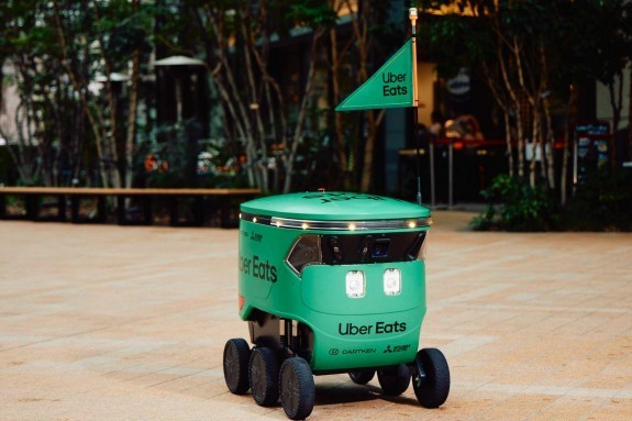 配送ドロイドは日本のスタートアップZMPや米国スタートアップCartkenの製品を採用している。Cartkenの配送ドロイドは三菱電機が日本市場向けに改良した。Uber EatsもCartkenの配送ドロイドによるデリバリーを、2024年3月から東京で、同年11月には大阪で開始した。