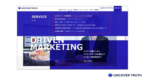 筆者が勤めるUNCOVER TRUTHのWebサイトを例に実際にやってみましょう。ここからは、利用している人の気持ちになって書いていきます。