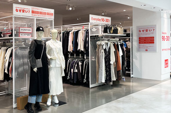 オフプライスストアは米国で広がっていて、「T.J.Maxx(ティー・ジェー・マックス)」「Ross Dress for Less(ロスドレスフォーレス)」などがある。日本でもじわじわ増えていて、ワールドやオンワード樫山などでも展開しているが、個人的に気になっているのは、ゲオグループのゲオクリア社(名古屋市)が運営する「ラックラック(Luck Rack)」だ。
