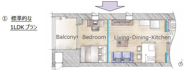 例えば、野村不動産。天井高が異なるスペースでも、部屋数を変えられる物件を開発した。1人のときは1Rとして広く使って、誰かが来たときや家族が増えたときには部屋を仕切って、1LDKにするといった具合である。