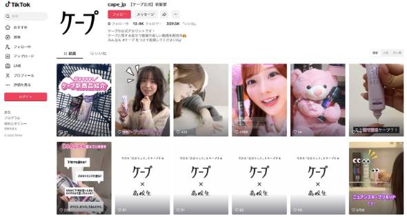 SNSのうち、最も活発なのはTikTokで、「【ケープ公式】前髪部」のアカウントで積極的に運用。女子高生やアイドルが出演する投稿も多い。2025年2月にはケープの愛用者である人気アイドル「超ときめき▼宣伝部」(▼=白ハート)を起用したネット広告を公開し、反響を呼んでいる。