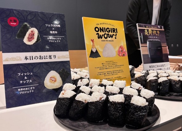 この他、万博の店舗としては象印マホービンのおにぎり専門店「ONIGIRI WOW!」では、ツナマヨなど定番4種に加えて、日本の地方と世界の具材を使ったおにぎり4種ずつを1カ月ごとに更新しながら販売している。握るのは、寿司ロボットのパイオニアである鈴茂器工製の「ふんわりおむすびロボット」だ。