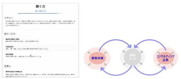 ライフプランナーのスキル強化を目的としたアプリケーションも同時に開発した。ソニーライフ・コミュニケーションズのノウハウを学習したAIが、対話内容をもとに「信頼関係の構築」や「顧客のニーズの把握と対応力」といった観点から具体的な改善策を提示する。