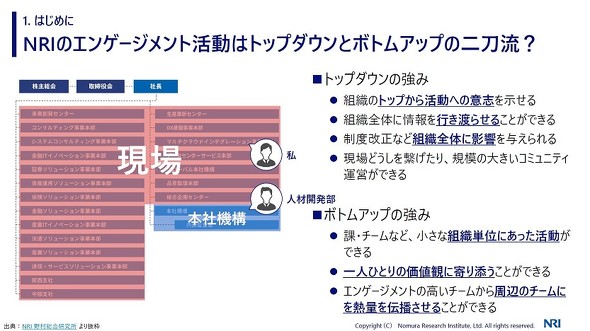 ――NRIは規模が大きい企業です。エンゲージメント向上活動はどのような構造になっているのでしょうか?