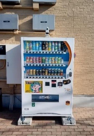 自動販売機は防犯カメラ機能と災害対応機能を搭載しており、日常の防犯強化と非常時の飲料提供に対応する。
