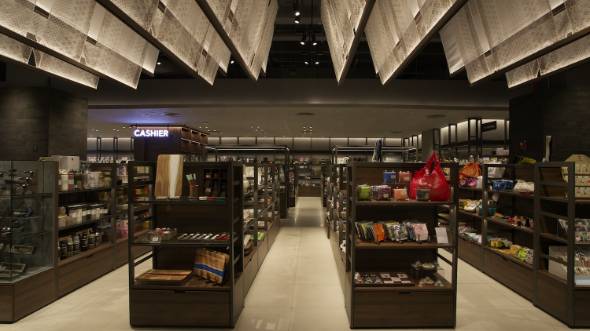 店舗面積は466坪で、同国の書店では最大規模。書籍はもちろん、文具や雑貨も豊富に扱う。カンボジアと日本の食文化を融合させたカフェレストランもあり、長く過ごせるよう設計されている。