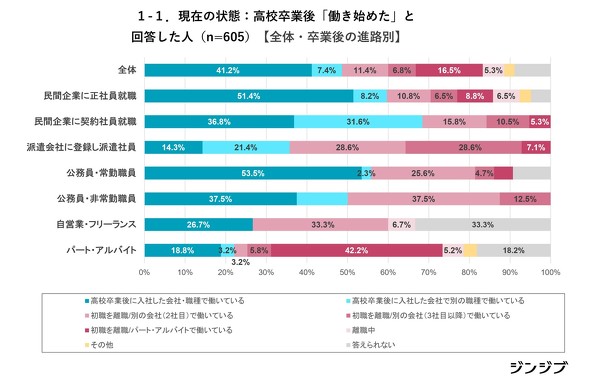 厚生労働省の調査によると、2025年3月に卒業予定の高校生の求人倍率は4.10倍と、1988年以降最も高くなった。高校生の就職活動や転職ニーズはどうなっているのか。高校生の就職を支援している「ジンジブ」(大阪市)は、高校を卒業して社会に出た18〜26歳を対象に調査を行った。