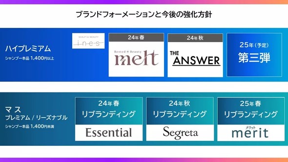 同社は高価格帯シャンプーを含めたインバスヘアケア商品の売り上げを、2027年までに2023年比で1.56倍に伸ばすことを目指す。2025年夏にも高価格帯シャンプーの新たなブランドを展開する予定だ。