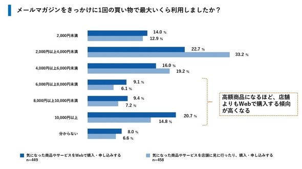 メールマガジンをきっかけに、1回の買い物で最大どれくらいお金を使うことが多いのか。