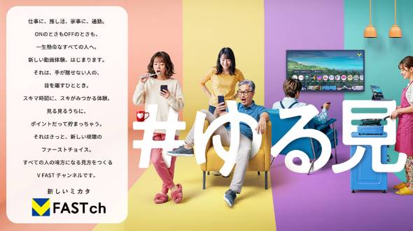 両社はV FASTチャンネルで、多様化する視聴ニーズに応える新しいスタイルとして「#ゆる見」を提案。今回のサービスは、サブスクでもなく、従来のテレビでもない、新しい視聴環境として、完全無料のポイントも貯まる動画視聴サービスを展開する。