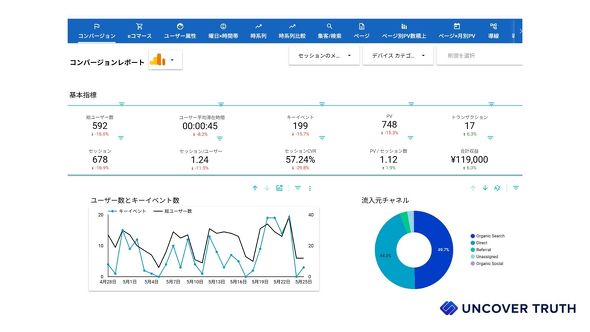 アクセス状況やCV(コンバージョン)などを集計して、社内やチームに共有することで、状況報告や課題感の統一をスムーズにして改善や意思決定に役立てます。
