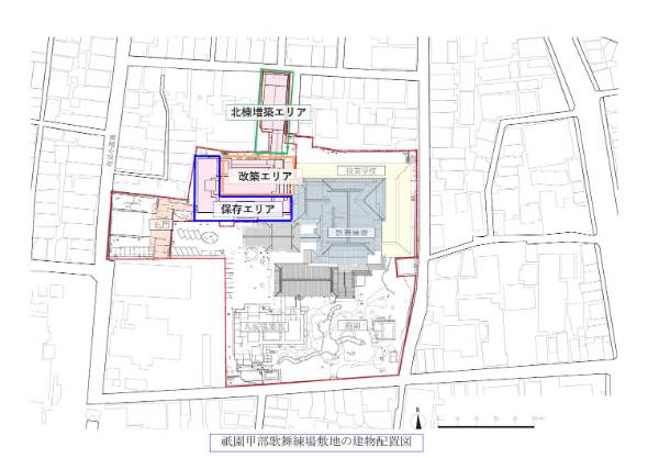 帝国ホテル 京都は、国の登録有形文化財である「祇園甲部歌舞練場」(ぎおんこうぶかぶれんじょう)敷地内の劇場「弥栄会館」の一部を保存活用したホテルだ。弥栄会館は、耐震性の不足と老朽化により大部分が使用されなくなり、どう継承するかが検討された結果、「躯体一部保存+外壁2面保存・増改築」によるホテルへの再生が決まった。