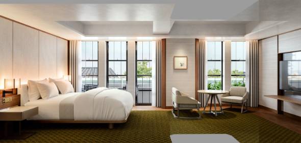 全55室のスモールラグジュアリーホテルで、「保存」「改築」「増築」の異なる建築構造や眺望を持つ3エリアで展開する。内装デザインは、建築設計事務所「新素材研究所」(東京都港区)の榊田倫之氏が担当し、総事業費は約124億円となる。