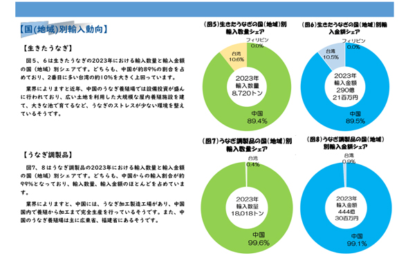 実際、東京税関の資料によれば、2023年に日本に持ち込まれた「生きたうなぎ」(8720トン)のうち89.4%が中国産。「うなぎ製品」(1万8018トン)のうち99.6%が中国産である。