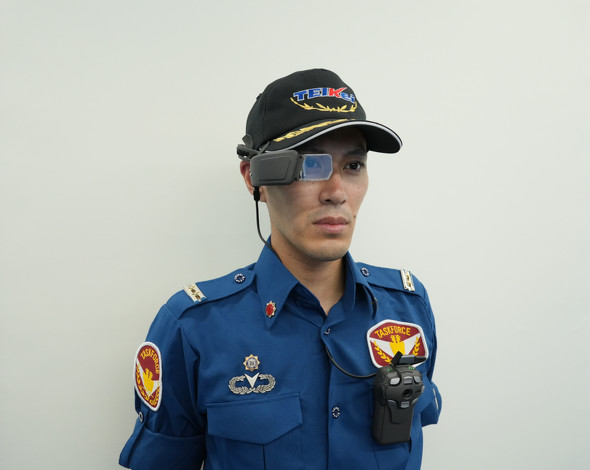 HMDには動画や文字情報を映すことが可能で、ウェアラブルカメラと連動して使うという。同社はなぜHMDを開発し、装着によってどのような警備が可能となるのか。広報部の大部公彦氏、施設警備事業部の林宇宙氏に取材した。