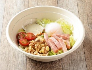 「できたてBOWL SALAD」は、「シーザーサラダ」と「コブサラダ」(いずれも864円)の2種類をベースとして用意。トッピングは「ゆで卵」や「スモークサーモン」など9種類で、価格帯は108〜324円。ドレッシングには、カスタムサラダ専門店「クリスプサラダワークス」のものを採用する。店内には専用の冷蔵ショーケースを設置し、客が選んだ具材を店員が盛り付けて提供する。