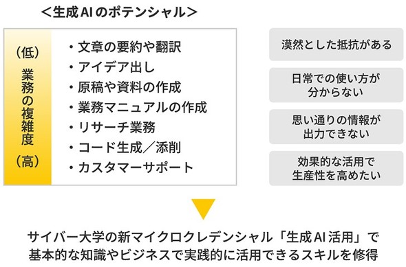 その中で、株式会社立かつ完全オンライン型のサイバー大学は、生成AIの実践的な活用法を学ぶ新カリキュラムを開講。米シリコンバレーやハリウッドの最前線で活躍する専門家も巻き込み、「単に使える」だけではなく「本質を見抜く力」を育てる教育を目指している。