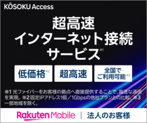 楽天モバイルが回線とプロバイダーのサービスを一括提供しており、低価格な点も魅力の一つだ。「1Gbpsプラン」は月額1万9580円(税込)で、全国エリア※でサービスを提供している。専有型回線の提供が限られる地方でも低価格で利用可能だ。