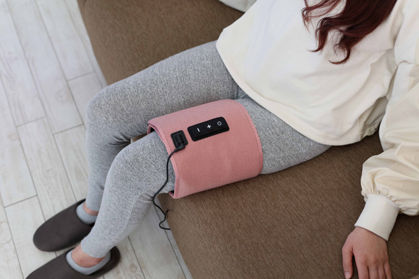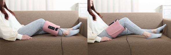 本製品は全長約68センチの大きめサイズで、ふくらはぎと太ももの両方に使える設計。部位に合わせて使い分けができ、使用中は8つのエアバッグがふくらみ、足を全体から包み込むようにした。