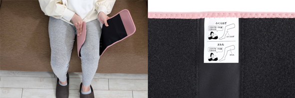 面ファスナーを採用することで、サイズ調整が容易で、太ももへの装着もスムーズに行える仕様となっている。装着位置の目安として、内側には視認性の高いタグを設け、イラストを用いることで直感的な操作をサポートしている。