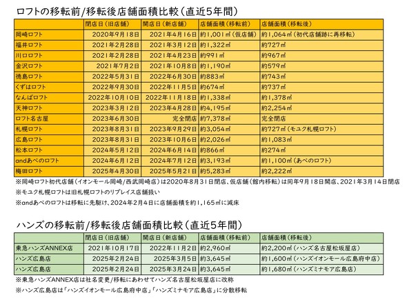 2021年10月には池袋サンシャイン60通りの「東急ハンズ池袋店」(当時)が完全閉店、2025年4月30日には大阪梅田茶屋町の「梅田ロフト」が近隣百貨店「阪神梅田本店」への移転にともない、35年の歴史に一旦幕をおろした。