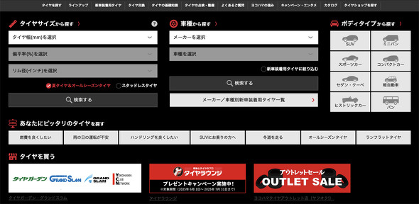 タイヤメーカーや販売店のWebサイトを見ると、タイヤサイズや車種、目的などによって最適な商品を提案してくれる仕組みになっている。また、価格比較サイトなども活用し、目的に合ったタイヤをより安く購入するのが最近のトレンドだ。