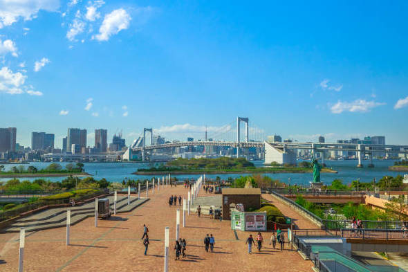 東京都港区の臨海部にあるお台場は、現在では観光名所として知られるようになった。週末になると多くの人が訪れ、海浜公園には釣りをする人や観光客の姿が絶えない。