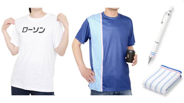「ローソンオリジナルTシャツ」(カタカナ・ストライプの2種、各1780円)、無印良品から「振って芯が出る低重心シャープペンシル(ブルーピンクボーダー)」(750円)と「ふっくらパイルハンドタオル(ブルーピンクボーダー)」(490円)、ボックスに「からあげクン」がデザインされた「ネピア フレスコアドティシュ 180W」(2種、各215円)のラインアップだ。