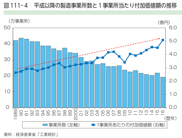 経済産業省によれば、国内製造業の事業所数は1989年に42.2万もあったが、2016年に19.1万へ半減した。そして経済センサスによると、2021年6月には17万6858事業所にまで落ち込んでいる。