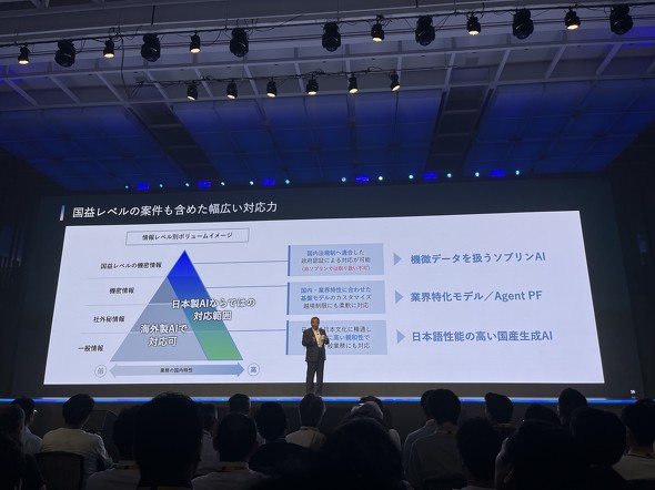 また、AIは単独で完結するものではなく、実務で活用するためには業界ごと、さらには企業ごとに最適化したモデル開発が不可欠となる。例えば、業務ごとに要求される言語表現の違いや、AIに割り当てるタスクの性質が大きく異なるためだ。そのため、ソフトバンクは汎用的な知識に基づくAIと、業務特化型AIの双方を用意し、これらを適材適所で使い分けできる環境を構築している。この取り組みは「海外製品の排除」を目的とするものではなく、ユーザーにとって最適な選択肢を用意することに重きを置いている。