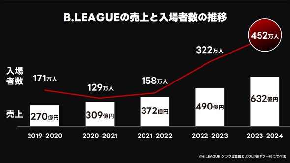 2025年10月に新シーズンが開幕する男子バスケットボールのプロリーグ「B.LEAGUE」(Bリーグ)。今年で創設10周年を迎えるBリーグは、2023〜2024年の売上高が632億円と過去最高を記録。人気は、うなぎのぼりだ。