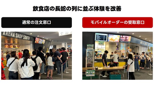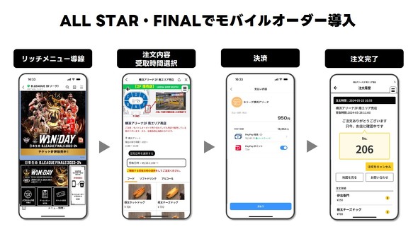 オールスターと「りそなグループ B.LEAGUE FINALS 2024-25」 では、モバイルオーダーなども導入。飲食店の長蛇の列に並ぶという顧客体験を改善させたという。