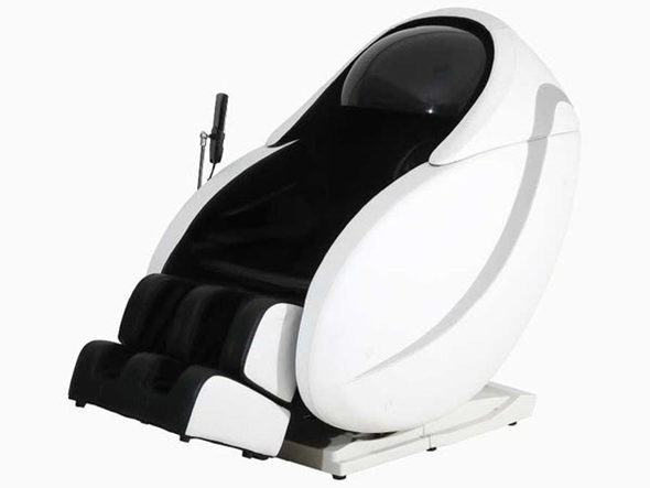 現行の最新モデルである「あんま王4」については、従来機と同様に「無重力」感覚をうたうリクライニング機能を搭載。フルフェースフードでプライベート空間を確保したもので、利用者目線で「人の往来が激しいところでは恥ずかしい」「リラックスした顔が見られたくない」といった声に応えたものだ。