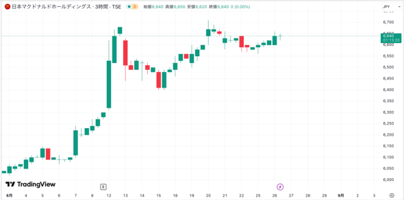 世論が批判一色でも、日本マクドナルドホールディングスの株価はうなぎ登りだ。投資家が短期的な売り上げを押上げる効果を期待したためだ。実際、8月11日の謝罪リリース公表後に株価は上昇を加速させていった。