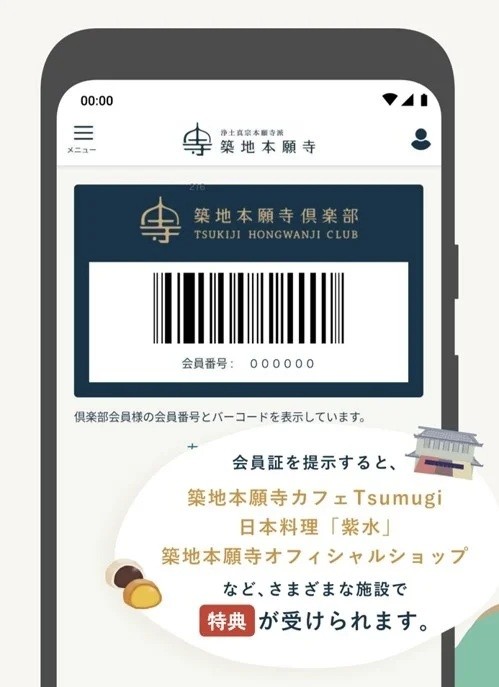 現在約7万人が登録する会員向けプログラム「築地本願寺倶楽部」では、人々が継続的に築地本願寺と接点を持ってくれるよう、さまざまなサービスを用意する。施設内のカフェの割引サービスを提供して寺に足を運ぶ人を増やす狙いがある他、終活や人生に関する悩みを僧侶に相談できるサービスも提供している。